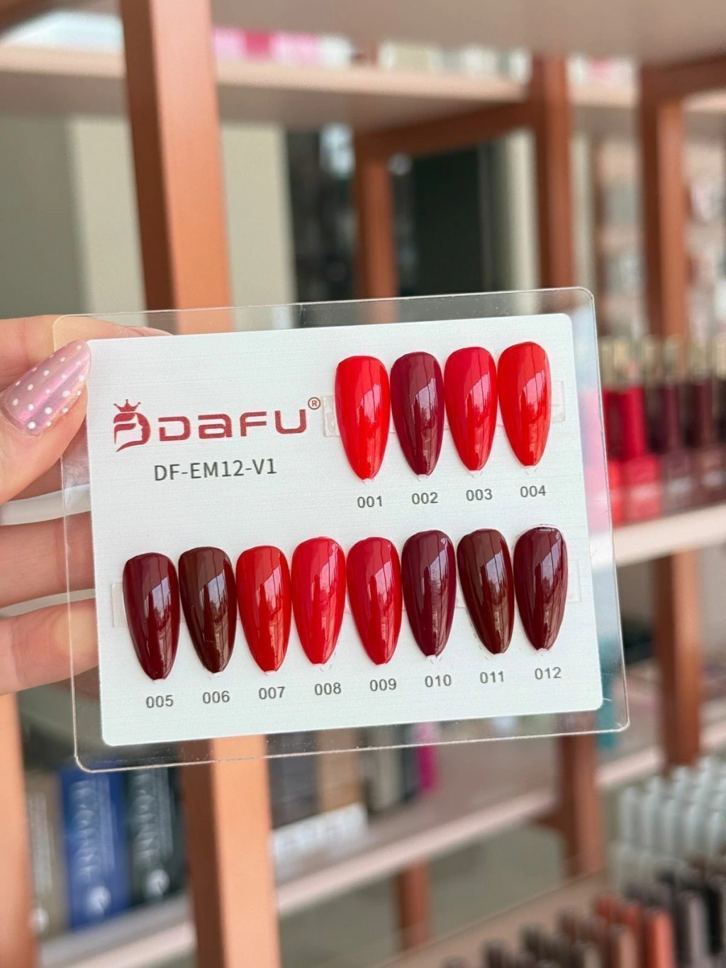 Esmalte Semipermanente – Tonos Rojo DAFU 10ml CategoríasPINCELES REMOVEDORES LIMAS ESMALTES FRESAS PEGAMENTOS SOFT GEL PEGAMENTOS PARA TIPS HERRAMIENTAS GEL CONSTRUCCIÓN PREPARADORES GEL PAINT UÑAS SOFT GEL POLYGEL DECORACIÓN CAPPING GEL Y RUBBER ACEITES DE CUTÍCULAS BASES Y TOP COAT MOBILIARIO ELECTRÓNICOS General Esmalte Semipermanente – Tonos Rojo DAFU 10ml$240 Color Elige una opción001004005006007008009Limpiar Esmalte Semipermanente - Tonos Rojo DAFU 10ml cantidad Comprar ahora SKU: N/D Categoría: ESMALTES Información adicional Información adicional Color 001, 004, 005, 006, 007, 008, 009 Productos relacionados ¡Oferta! AgotadoPincel linner OBEEYA $289 El precio original era: $289.$240El precio actual es: $240. Seleccionar opciones ¡Oferta! Esmalte ojo de gato ice CHARM $350 El precio original era: $350.$300El precio actual es: $300. Seleccionar opciones ¡Oferta! Semi Charm limit-vía láctea 10 ml $399 El precio original era: $399.$330El precio actual es: $330. Seleccionar opciones ¡Oferta! AgotadoSilver painting gel $440 El precio original era: $440.$420El precio actual es: $420. Leer más